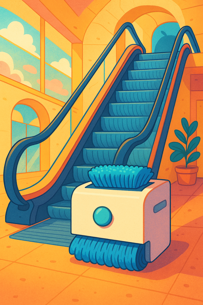 CleanSteps is an innovative system that automatically cleans escalators every 10 seconds. Designed for malls, airports, metro stations, and other public spaces, CleanSteps ensures hygiene, safety, and a modern image without the need for constant manual cleaning.